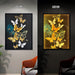 - What's In The Package: Framed canvas painting titled "Digital Butterflies" with built-in LED light, MDF back panel with hanging hook, and a plug-in power adapter.