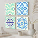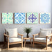 Set of 4 Stretched Canvas Bright Fractal Floral Moroccan Pattern Art Painting.