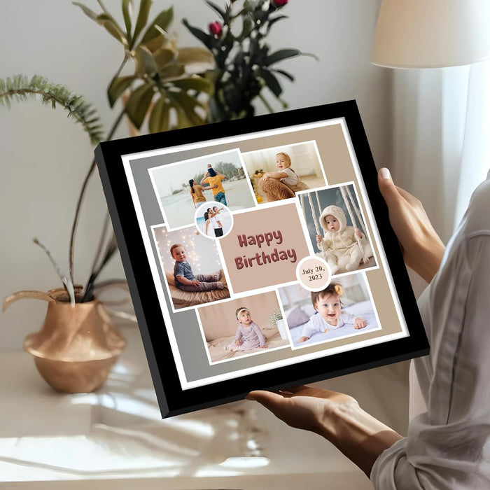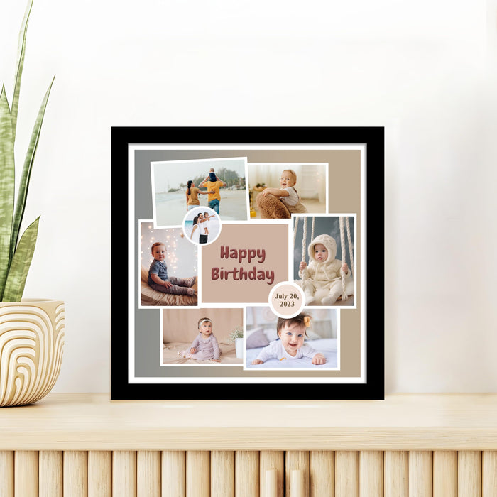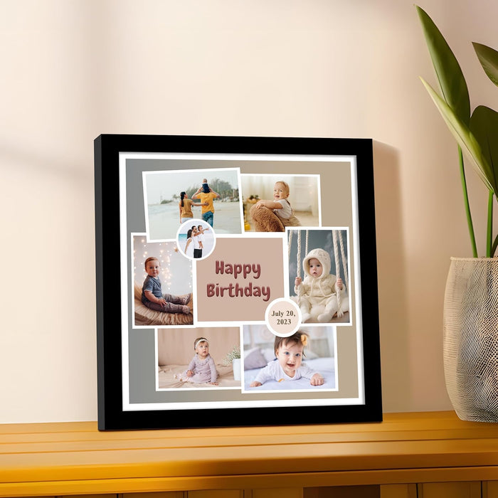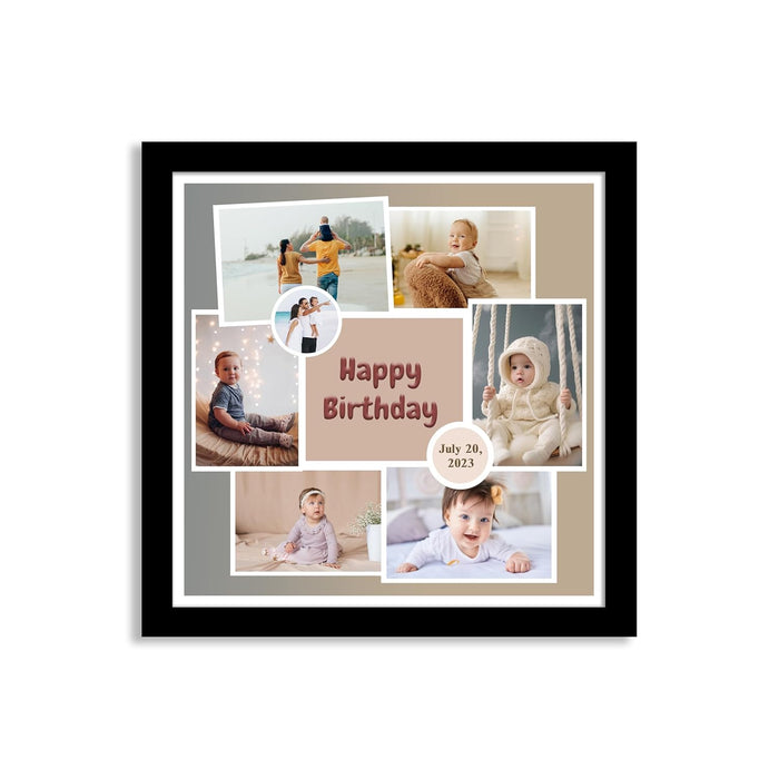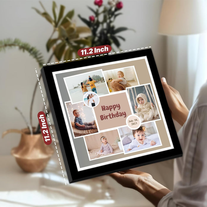 Personalized Baby Happy Birthday Wall Photo Print Collage with 7 Photo Upload Customized Photo Frame (Frame Size 11x11 inch)
