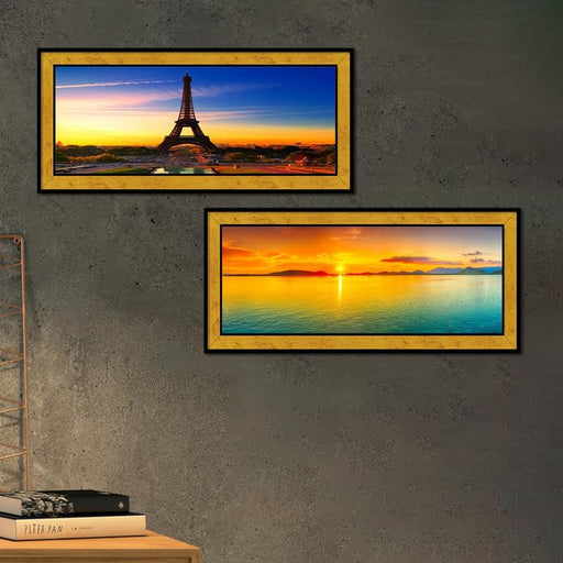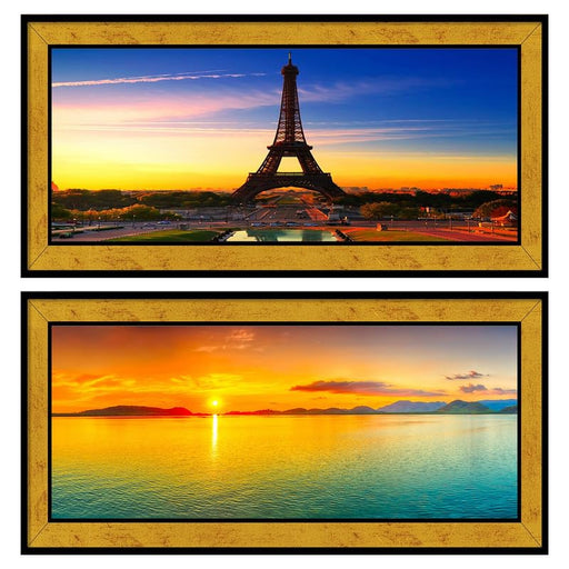 Painting Mantra Modern City of Love Eiffel Tower & Sunset Poster Framed Art Print For Living Room, Decorative Home & Wall Decor - Set Of 2 ...