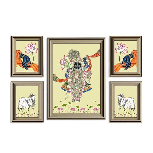 Original price Rs. 5,000.00Original price Rs. 5,000.00 - Original price Rs. 5,000.00Original price Rs. 5,000.00Current price Rs. 799.00Rs. 799.00 - Rs. 799.00Current price Rs. 799.00Art Street Pichwai Painting Indian Traditional Wall Art Of Lord Shrinathji Dancing For Living Room For Home Decor - Set Of 5 (Silver, 4 Pcs-5x7 Inch, & 12x18 Inch)