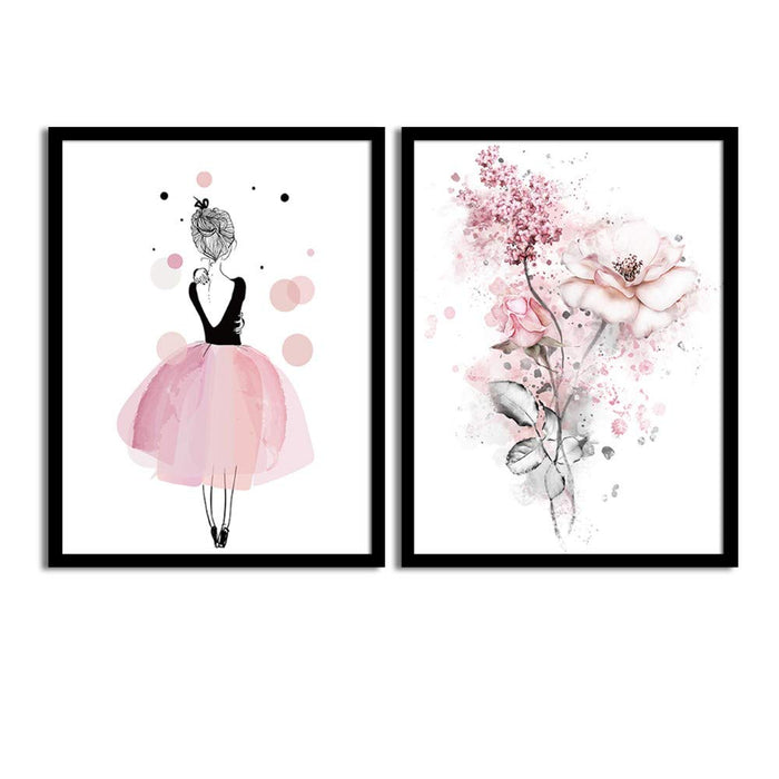 Set Of 2 Pink Matte Art Print, Framed Art Print For Home Decor