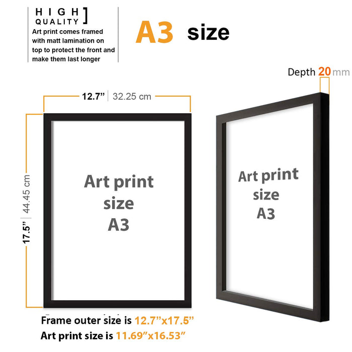 • Printed On Premium Quality Art Paper, Framed For Easy Installation. Synthetic Wood Frame Used For More Durability. Easy To Clean.