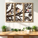 - What's in the Package: Includes 3 MDF cutout bird wall decorations, each with a unique abstract bird design in different colors, featuring birds sitting on a branch.