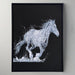 • What's In The Package: 1 framed canvas painting titled Monochromatic Running Horse from Water, featuring built-in LED lighting, MDF back panel with wall hook, and plug-in power adapter.