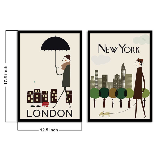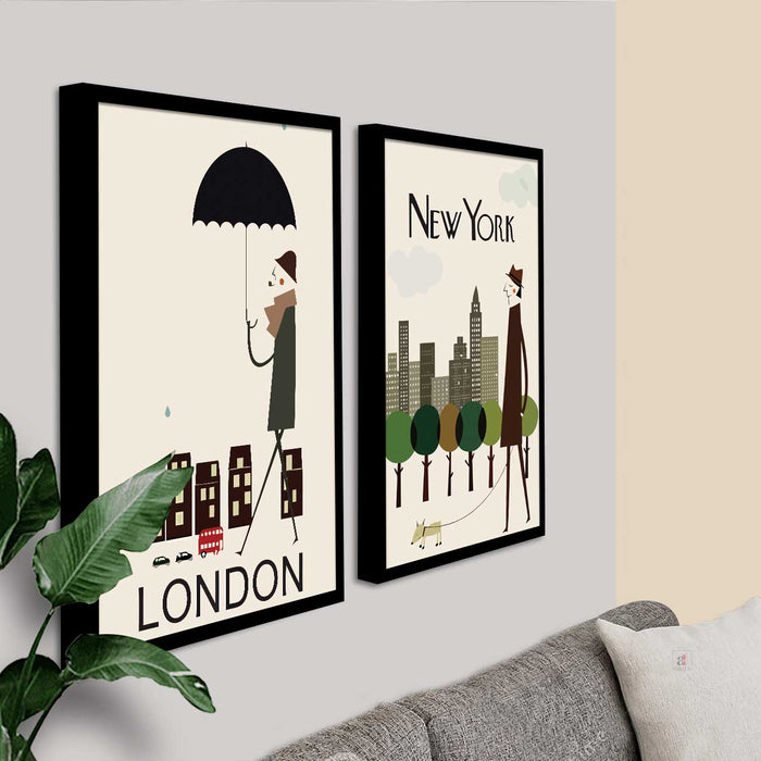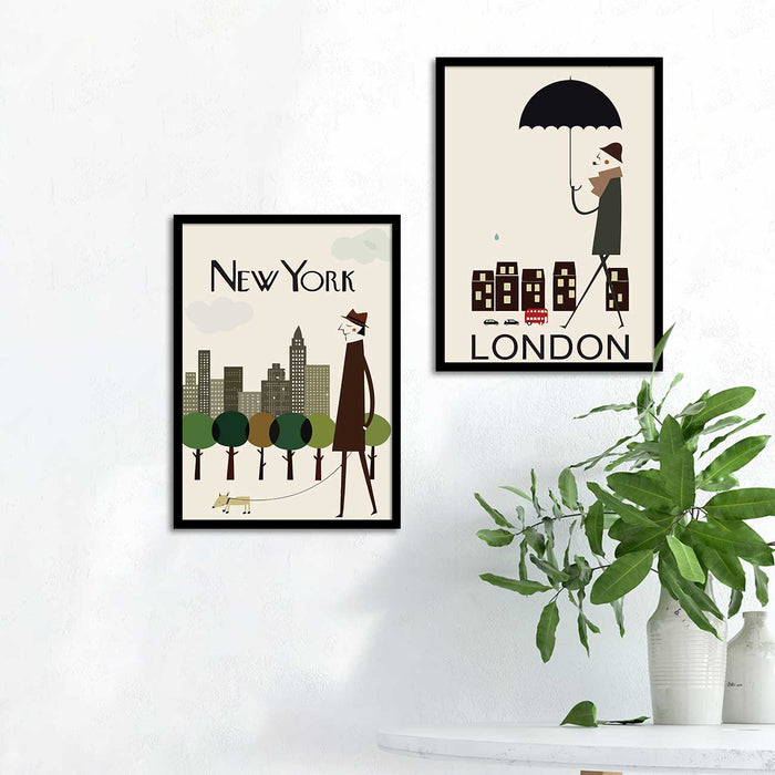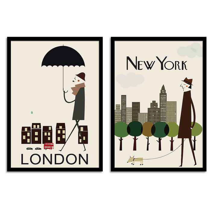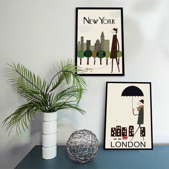 New York London Travel The City Silhouette A3 Framed Art Print For Home Decor